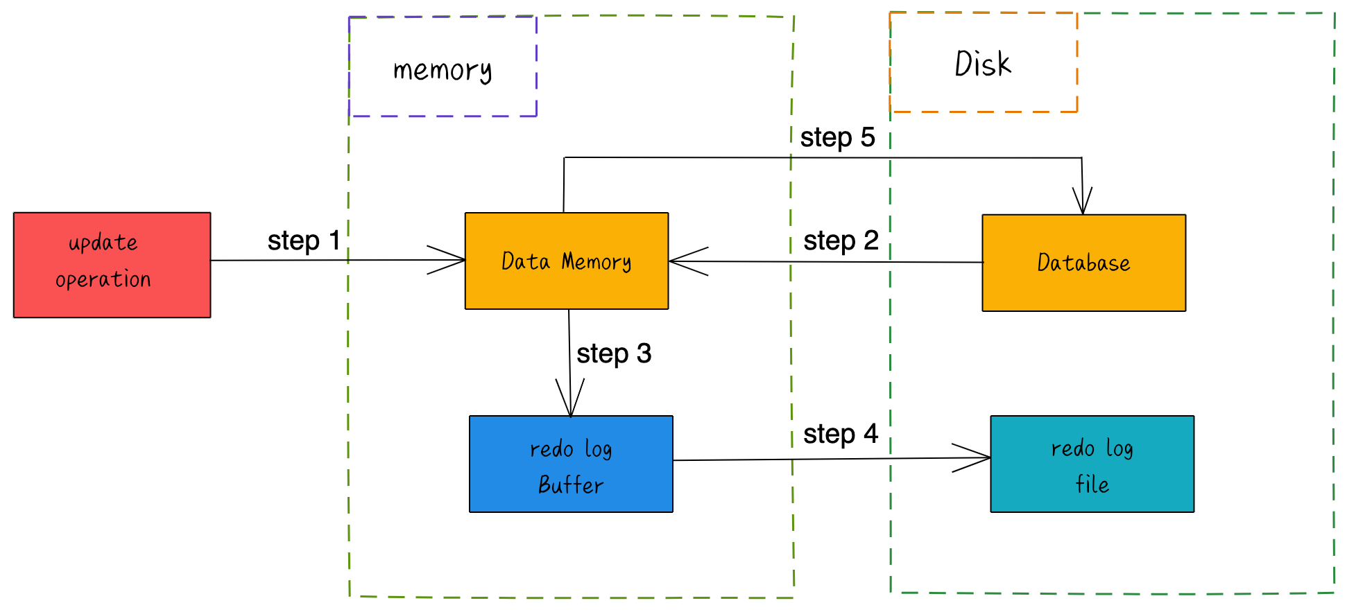 - 先将原始数据从磁盘中读取到内存,修改内存中的数据